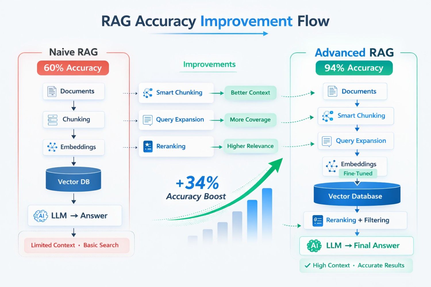 Illustration showing how a better retrieval strategy improves RAG accuracy